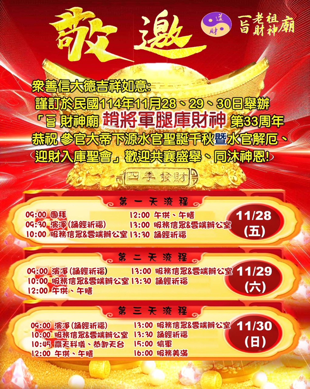 下源也是補財庫,有始有終大補財庫,接財氣到明年豐收又滿盈;另一則稱補水庫(解厄),因為水府掌管現世人之財富,如有水府財庫空虛,現世如要有財,故在水府要補財庫。