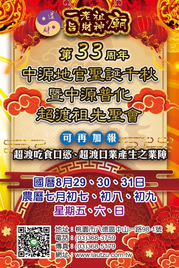 名為中源二品赦罪地官虛清大帝,每逢農曆七月十五日,即來人間校戒罪福,為人赦罪,釋放幽冥業滿之靈,也是盡孝道祭祀的日子,感謝父母先祖的養育,並請地官大帝為閤家人赦罪,為祖先赦罪,也為地獄眾生赦罪,這天做為祭祖的重要日子之一;另一則稱還地庫(赦罪),因為前世所做之事或所欠之冤親債主因果業障,不要在今生討或擾亂,以保事事順利,故曰還地庫。